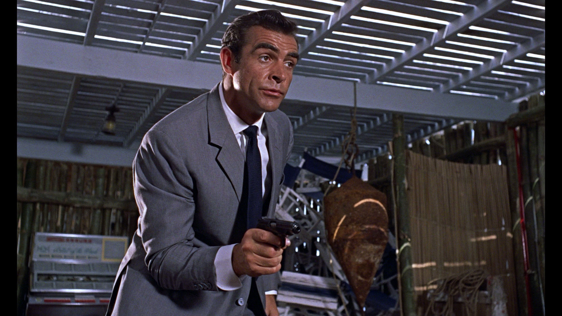 This is the first mention of SPECTRE, and the only time it's referenced without Blofeld being in the mix. Dr. No talks about how there could be a role for Bond as SPECTRE, just before he hands him over to his henchmen to "soften him up". Bond takes a pretty good beating, but by this point, Connery's created enough of an impression of the character that we have to figure this is all part of his plan.