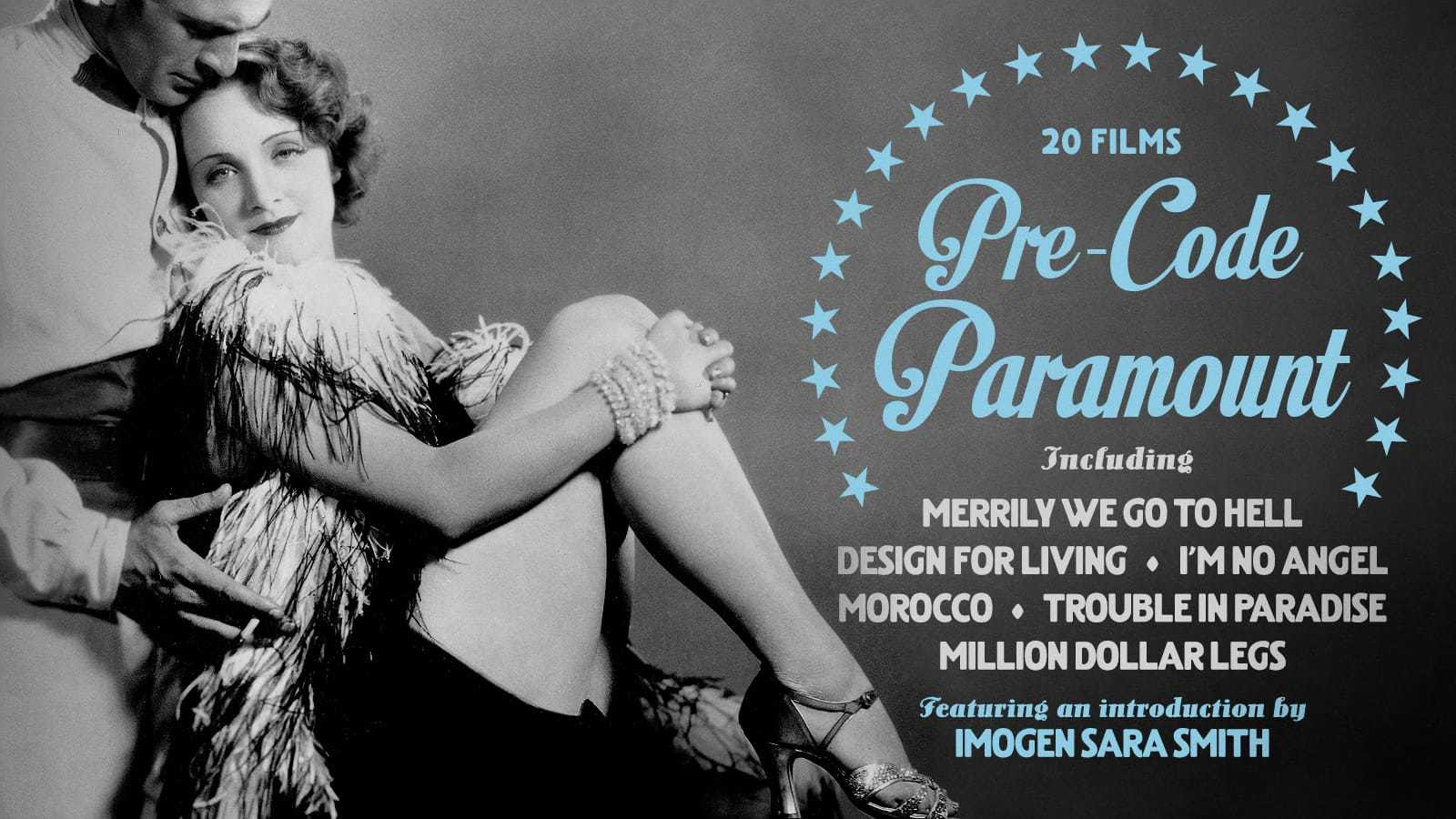 Before the enforcement of the Hollywood Production Code, sex, sin, and sleaze were splashed across the screen with abandon, and chiselers and gold diggers were cinematic staples. It was an era when Paramount Pictures stood out for the sophisticated amorality and continental flair it brought to its productions. Among the uncensored wonders that emanated from the studio’s back lots during the early years of talkies were the anarchic antics of the Marx brothers (THE COCOANUTS), the luxuriant exoticism of Josef von Sternberg and Marlene Dietrich (MOROCCO), the worldly wit of Ernst Lubitsch (TROUBLE IN PARADISE), and the jaw-dropping double entendres of Mae West (I’M NO ANGEL)—plus forays into quasi-Dadaist delirium (MILLION DOLLAR LEGS), alcohol-soaked experiments in open marriage (MERRILY WE GO TO HELL), crazed zoologists (MURDERS IN THE ZOO), a musical ode to marijuana (MURDER AT THE VANITIES), and Cary Grant as the world’s most irresistible plastic surgeon (KISS AND MAKE-UP). This collection of pre-Code classics and rarities spotlights the delightfully risqué side of a studio that knew how to be naughty while (almost) always keeping it classy.